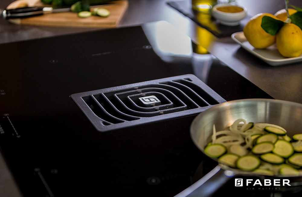 I sistemi Zero Drip di Faber fermano la condensa dopo che questa si è formata. Il primo la raccoglie in una scanalatura impedendo che cada sul piano cottura.