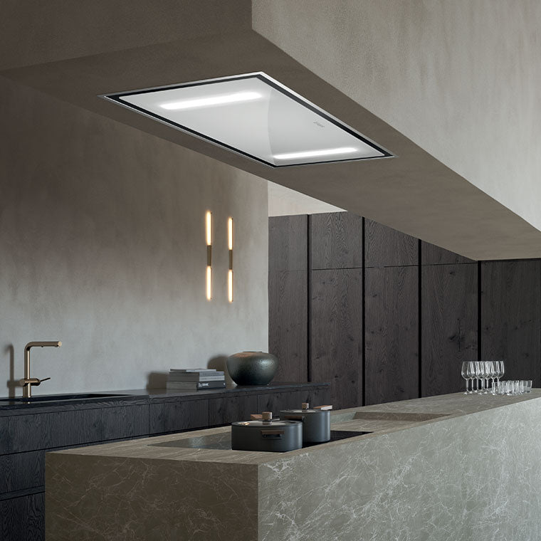 Ideal if you are looking for a discreet and sophisticated solution. They are installed inside the ceiling or integrated into the hob.