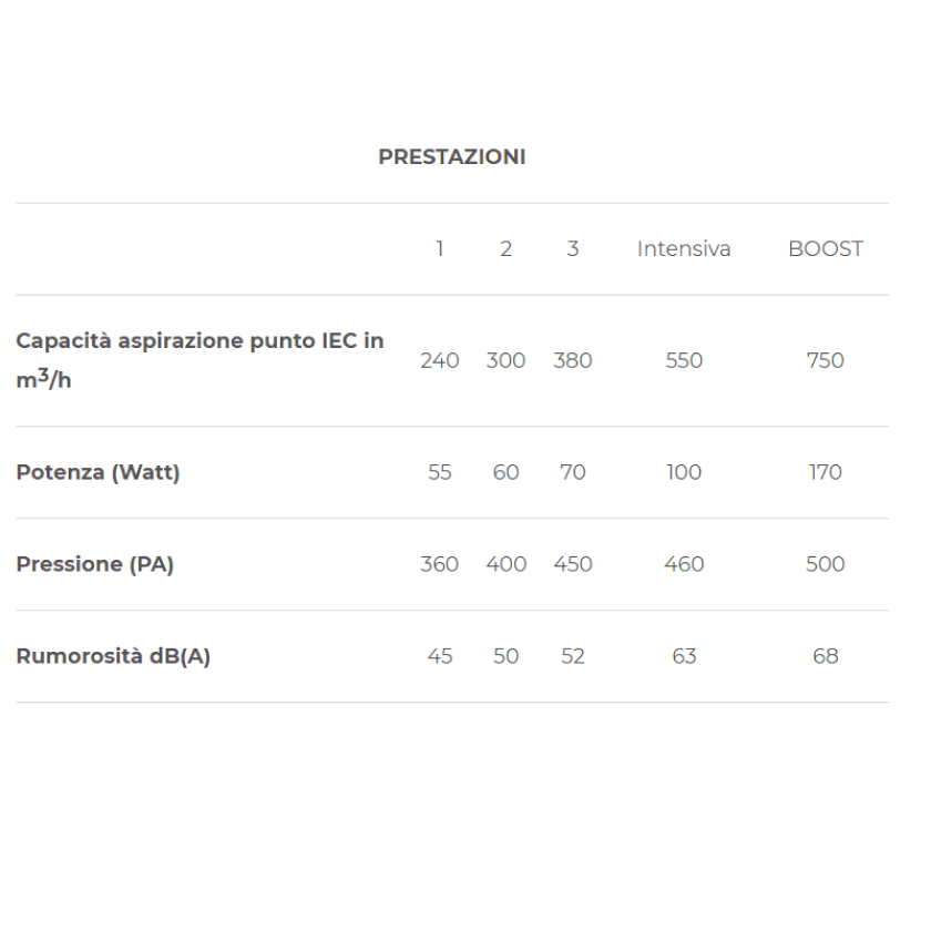 You can find information about the effectiveness of a hood in the performance table, within the product data sheet.The hood is effective if the table contains a suction capacity value equal to or greater than the calculated effectiveness, in one of the speed columns.