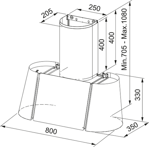 L’uscita d'aria posteriore permette di convogliare la fuoriuscita dei fumi sul retro della cappa, eliminando la prolunga camino