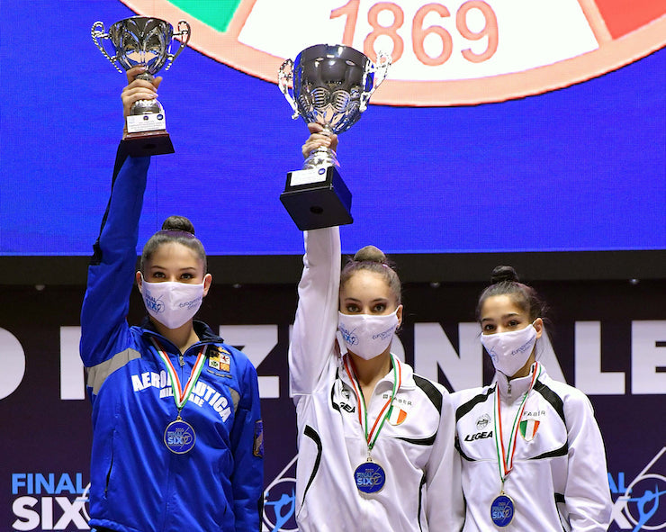A livello nazionale la Faber Ginnastica Fabriano ottiene il massimo risultato conquistando lo Scudetto 2017, vincendo il Campionato Nazionale di Serie A1; successo che si è ripetuto per ben 4 anni, fino allo scorso novembre, quando la squadra marchigiana si è aggiudicata il quarto titolo consecutivo di Campione d’Italia nella ritmica. Le tre stelle Milena Baldassarri (capitano), Talisa Torretti e Sofia Raffaeli hanno ribadito la loro superiorità tecnica nelle prove tecniche di fune, cerchio, palla, clavette e nastro, battendo nelle finali di Torino l’Udinese e la Motto Viareggio.