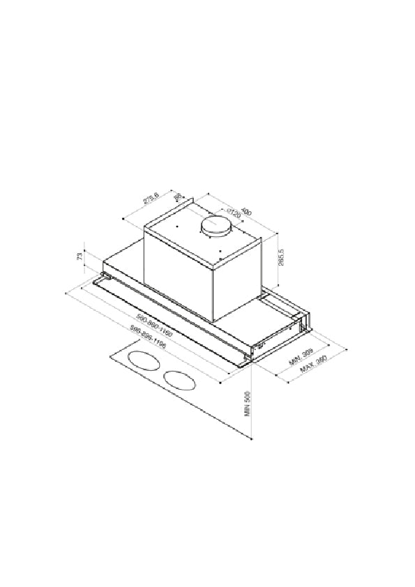 • Immagine Prodotto - CAPPA IN-NOVA AIR X KL A120/2 - in colore acciaio inox - codice prodotto 305.0615.701 - nella misura  - tipologia cappa a incasso