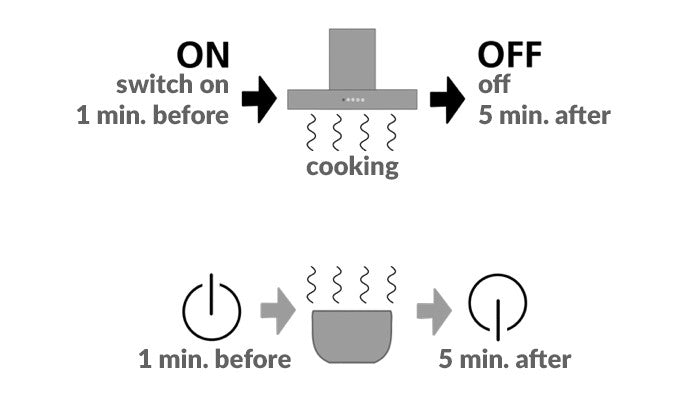 Ja nepieciešams, atstājiet nosūcēju ieslēgtu pēc vārīšanas un cepšanas, lai viss tvaiks un aromāti tiktu pienācīgi izvadīti.
