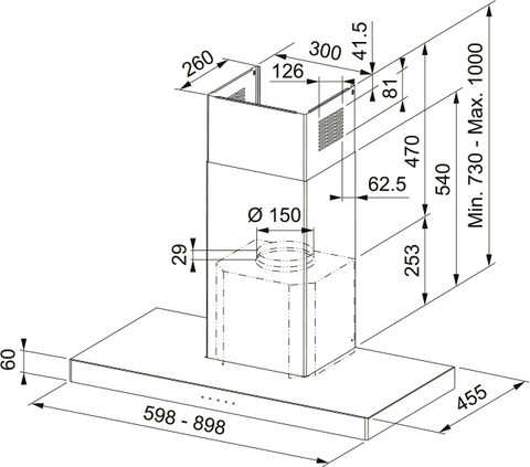 Stilo Glass Smart è una cappa a parete realizzata in acciaio inox dalla classica forma a "T", dotata di comandi touch ed un elegante pannello frontale nero per distinguersi.