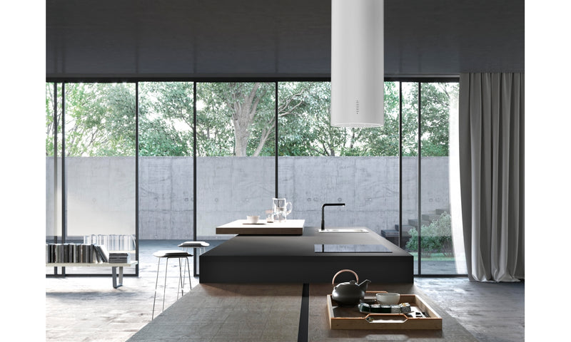 Preprosta in čista oblika nape z visoko tehnološko vsebino, kjer tradicionalna cilindrična oblika postane glavni igralec v trendovski kuhinji, hkrati pa je priomerna za vsak stil.