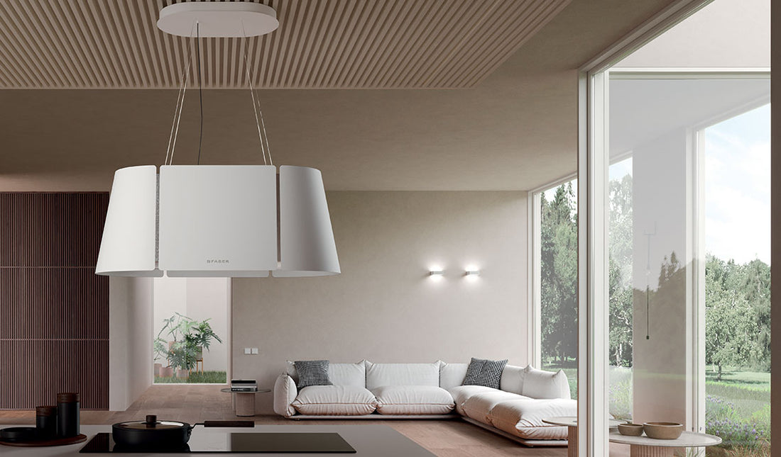 A goal achieved by Faber's Beat XL distinctively shaped suspended hood in the new White Matt finish, which seems to skilfully embody the spirit of absolute white in the kitchen, integrating harmoniously into environments dominated by purity thanks to its essential design and contemporary character. Ideal for large spaces and extended island kitchens, as well as offering a beautiful visual impact, it presents a series of advanced functions that make it an appropriate element for a modern and stylish total white kitchen.